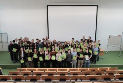 Naši žáci dosahují stále lepších výsledků u Cambridgeských zkoušek z angličtiny. Letos jsme předali 52 žákům 2. - 4. ročníků diplomy za úspěšně složené mezinárodní zkoušky v úrovních B1 - C2, které mohou využít u maturity, při studiu na vysokých školách i později v praxi.